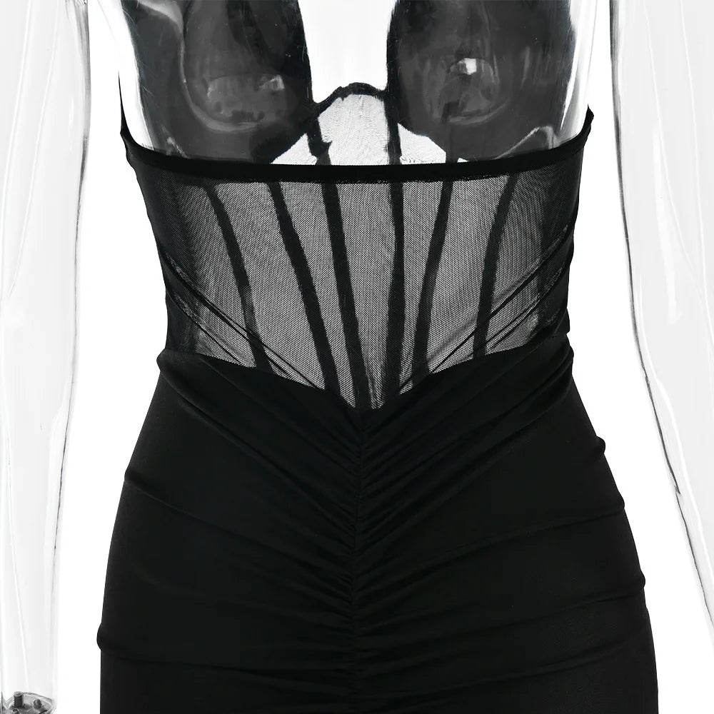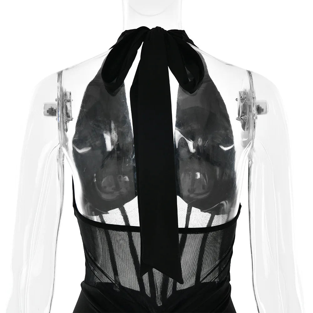 JULISSA MO Patchwork Sexy Deep V-neck Halter Women Maxi Dress Backless See Through Dress Summer Slim Elegant Party Evening Dress