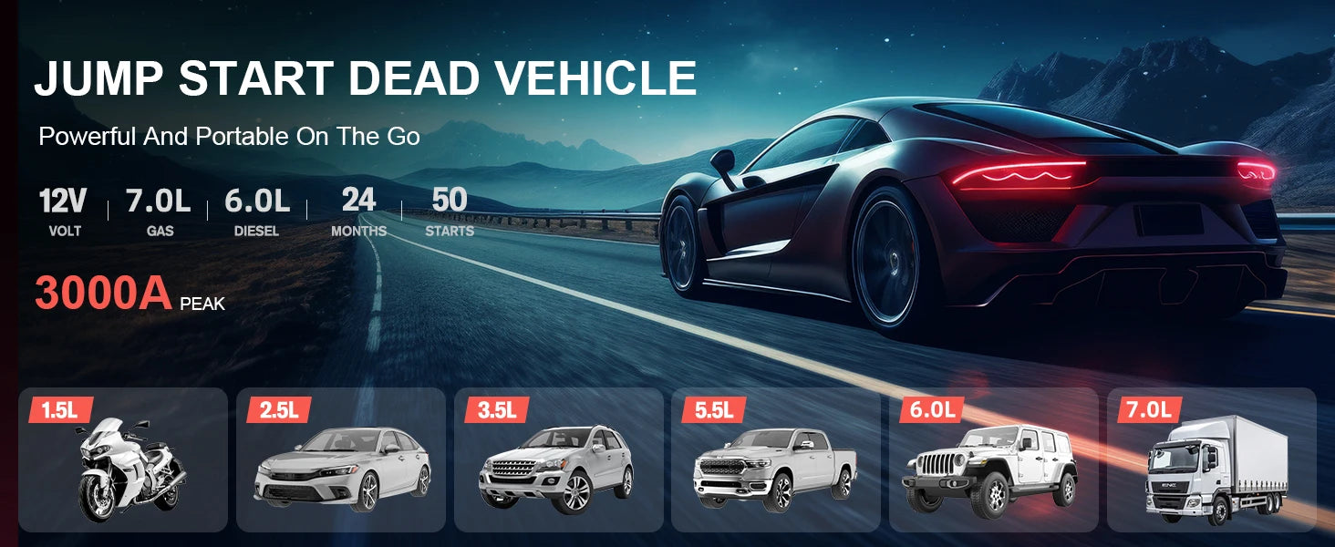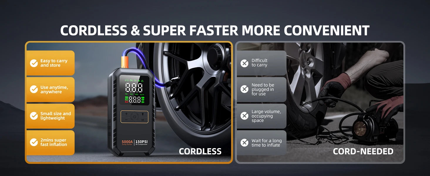 4-IN-1 Car Jump Starter with Air Compressor Peak 5000A Auto Battery Booster 150PSI Air Pump Portable Power Bank Tire Inflator
